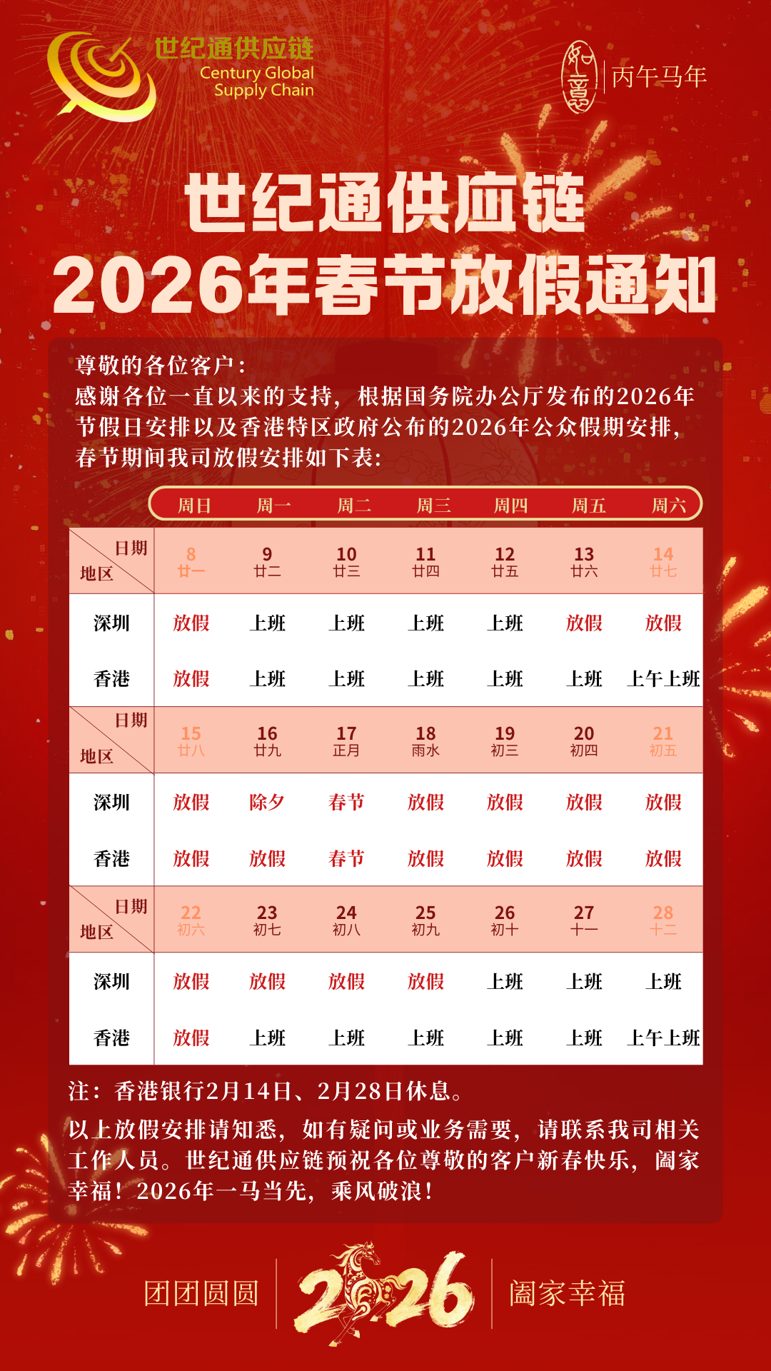 下一篇新闻:世纪通供应链2026年元旦放假通知