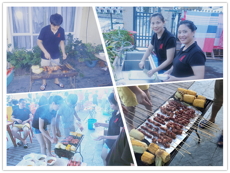 此时天色已暗,每组分别推选了一位大厨,一位二厨和两个帮厨,先行准备领取食材,大家聚集在露台上先将烧烤炉点燃,然后分工合作,串肉、摘菜以及清洗食材,交由大厨先行烧烤,整个过程井然有序的进行。