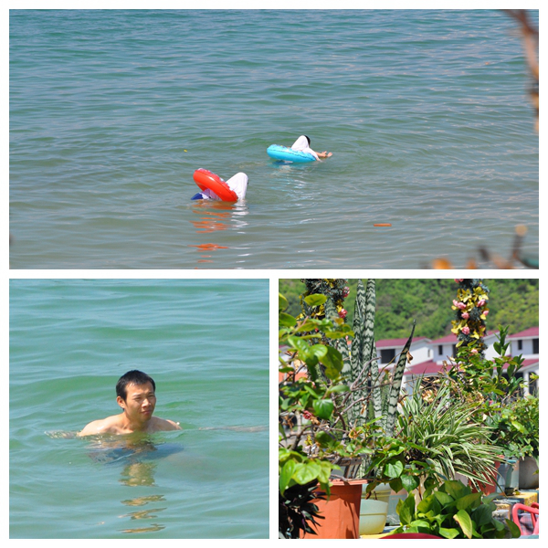 早上的云彩遮住了太阳,水清沙幼,大家有的下海游泳,有的去岩石边找小螃蟹,听海浪涌起的声音,缓解平时工作的疲惫。