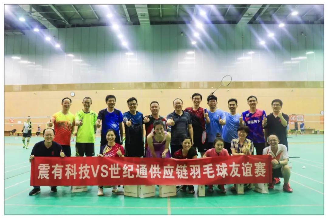 为祝贺我司重点合作伙伴“深圳震有科技股份有限公司”IPO成功,2020年7月6日晚,我司举办了“震有科技VS世纪通供应链羽毛球友谊赛”,震有科技董事长吴闽华先生应邀率队参加。为祝贺我司重点合作伙伴“深圳震有科技股份有限公司”IPO成功,2020年7月6日晚,我司举办了“震有科技VS世纪通供应链羽毛球友谊赛”,震有科技董事长吴闽华先生应邀率队参加。