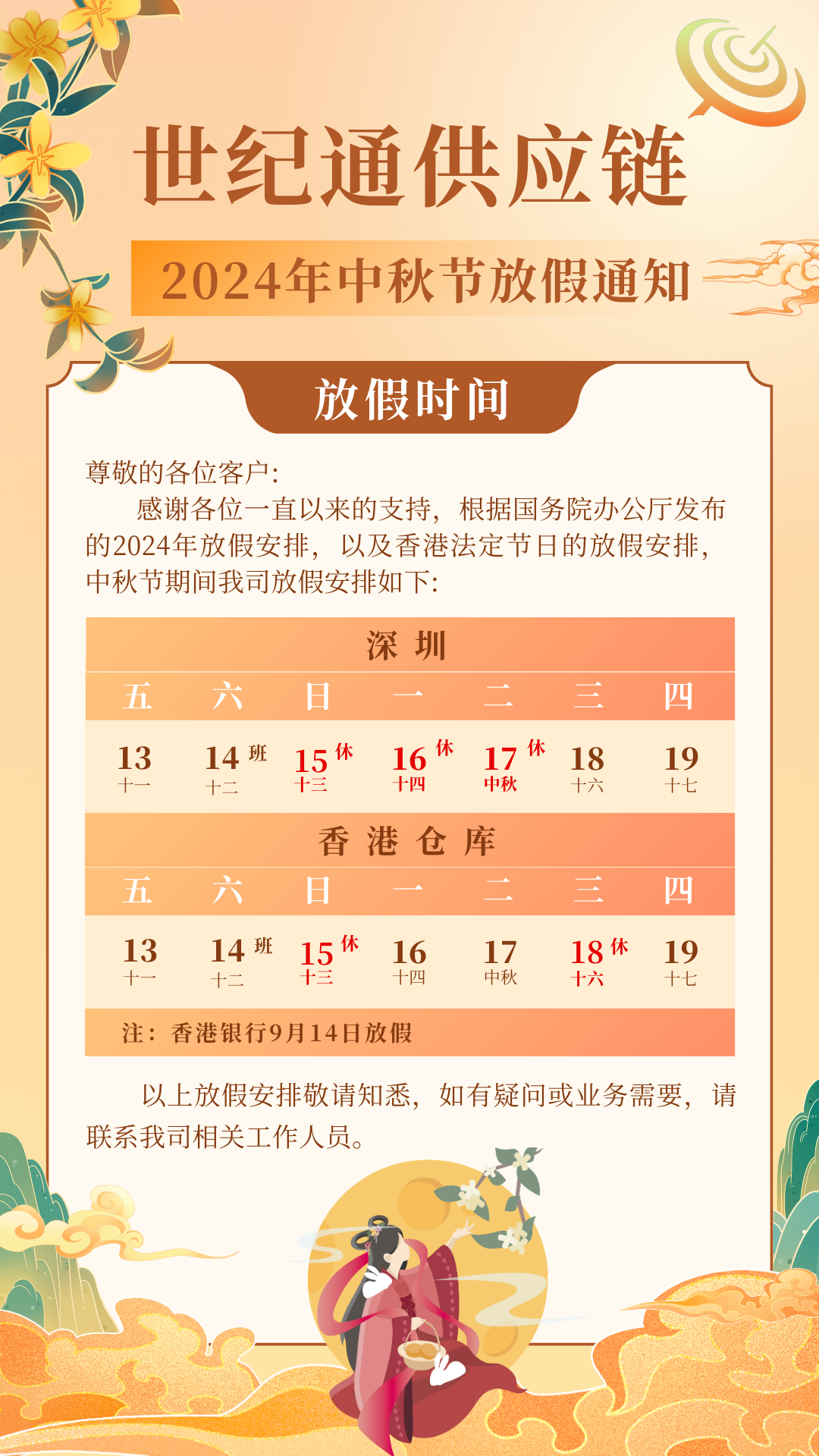 2024年中秋节放假通知