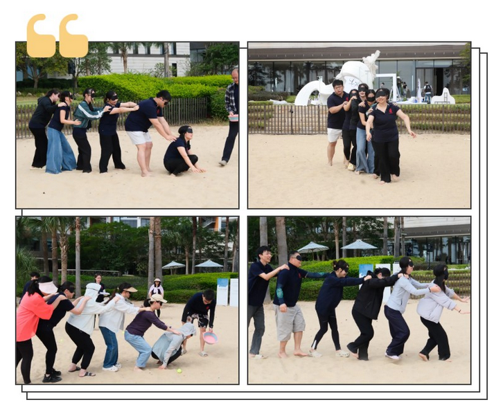 精彩纷呈的游戏结束了,大家的距离也在不知不觉中更进一步;张博士对团建策划表示十分满意,在聚餐时优先邀请了本次策划小组的成员分享感言。之后,他也邀请各部门同事就团建活动发表看法,以促进交流。